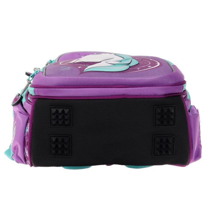 Рюкзак вмещает все необходимые форматы книг и папок. Нагрудный фиксатор способствуют равномерному распределению нагрузки. В нижней части рюкзака установлены пластиковые ножки.