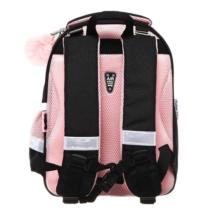 Размер: 35 x 26 x 13 см. Ранец с одним отделением на молнии. Спецальная компактнная, уменьшенная форма ранца для невысокого первоклассника. Внутри основного отделения - разделители для книг и тетрадей; эргономическая спинка Air Ergo Seventeen выполнена в виде накладок анатомической формы из нескольких слоев вспененных синтетических материалов, обтянутых воздухообменной сеткой; передняя панель и спинка выполнены из легкого, водонепроницаемого и устойчивого к деформации материала EVA, благодаря чему ранец держит форму. Лямки анатомической S-образной формы обтянуты воздухообменной сеткой, регулируются по длине; на лямках предусмотрена регулируемая грудная стяжка, которая снимает часть нагрузки с плеч и лучше фиксирует рюкзак на теле. По бокам - вместительные сетчатые карманы. Дно рюкзака выполнено из прорезиненного материала, которому не страшны влага и грязь. Удобная уплотненная ручка для переноски и петелька для подвешивания. Для безопасности рюкзак снабжен светоотражающими элементами.