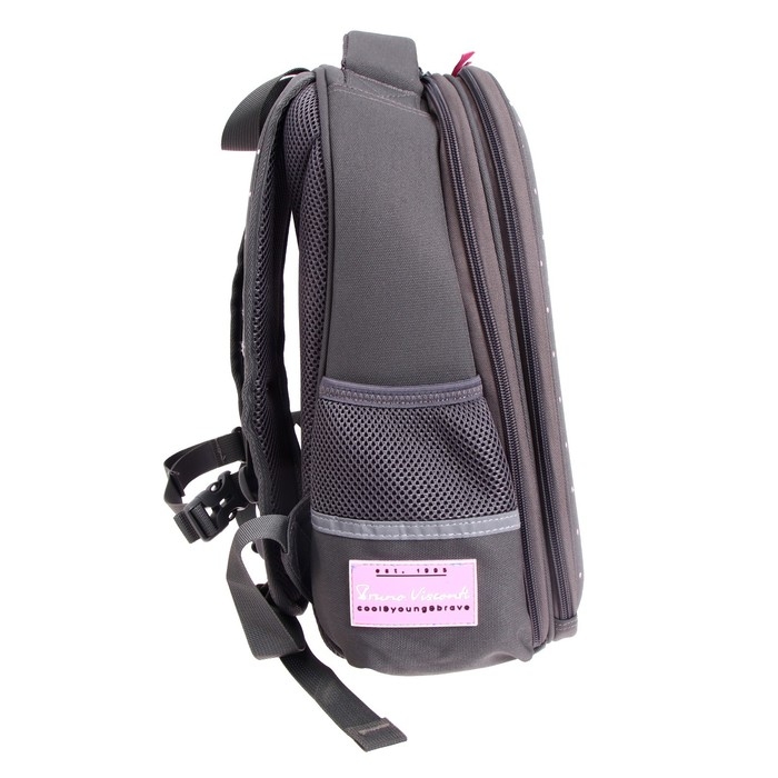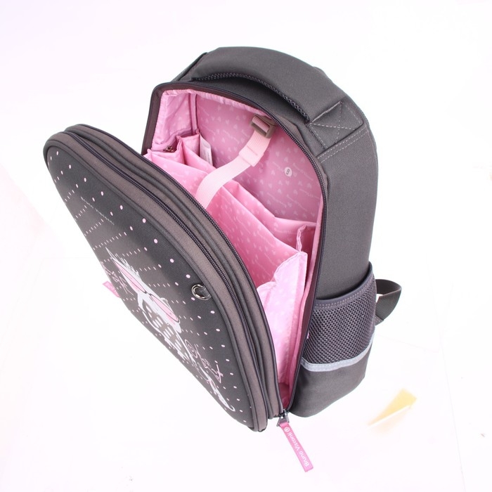 Рюкзак имеет два основных отделения: первое отделение содержит органайзер с молнией и карман-сеточку, второе отделение состоит из трех частей с двумя разделителями с фиксирующим ремнем и дополнено карманом на молнии для карточки. Рюкзак снабжён четырьмя светоотражающими элементами. Усиленное дно рюкзака оснащено резиновыми ножками, защищающими от загрязнения и влаги.