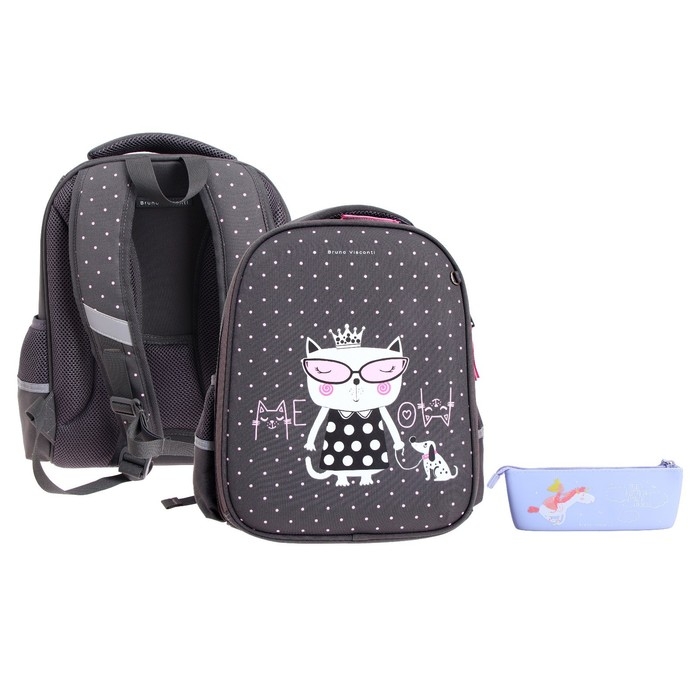 Рюкзак каркасный 36 х 28 х 17 см, + пенал, Bruno Visconti "Кошечка на прогулке"