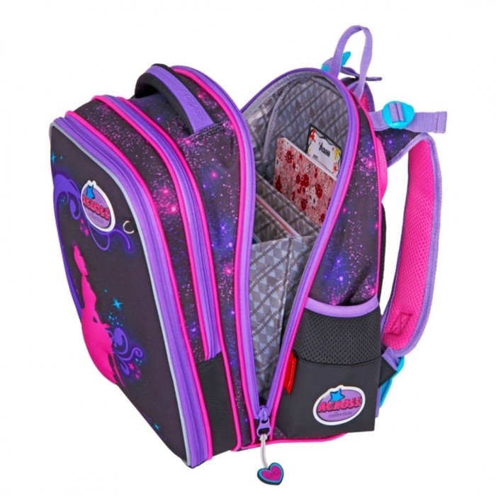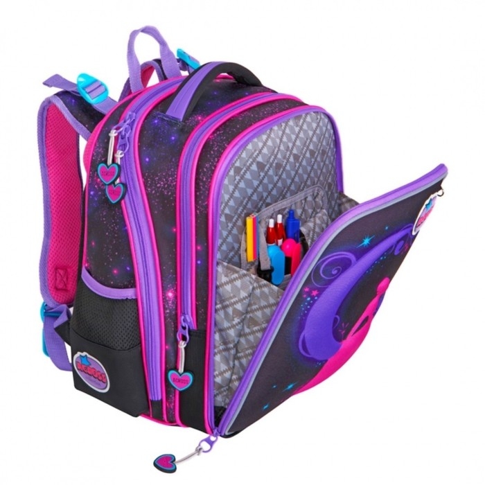 Светоотражающие элементы с 4-х сторон обеспечат дополнительную безопасность ребенка в темное время суток. Качественная молния-застежка. Жесткий безопасный, но легкий и удобный корпус. Плотное прорезиненное дно и пластиковые ножки обеспечивают устойчивость рюкзака. Яркий модный дизайн, 2 удобных кармана по бокам для бутылок или зонта, 1 передний карман-органайзер для всех мелочей. Внутри главного отделения плавающий разделитель для тетрадок и книг. В комплект входит: каркасный пенал-овал, мешочек для сменной обуви. Отличный подарок как портфель школьный для девочек и мальчиков.