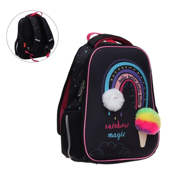Рюкзак каркасный 38 х 29 х 12,5 см, Hatber Ergonomic light "Радужное мороженое", синий NRk_71028