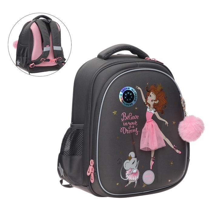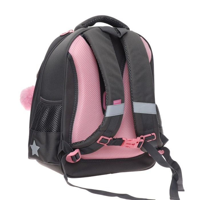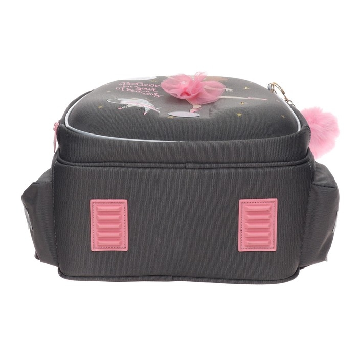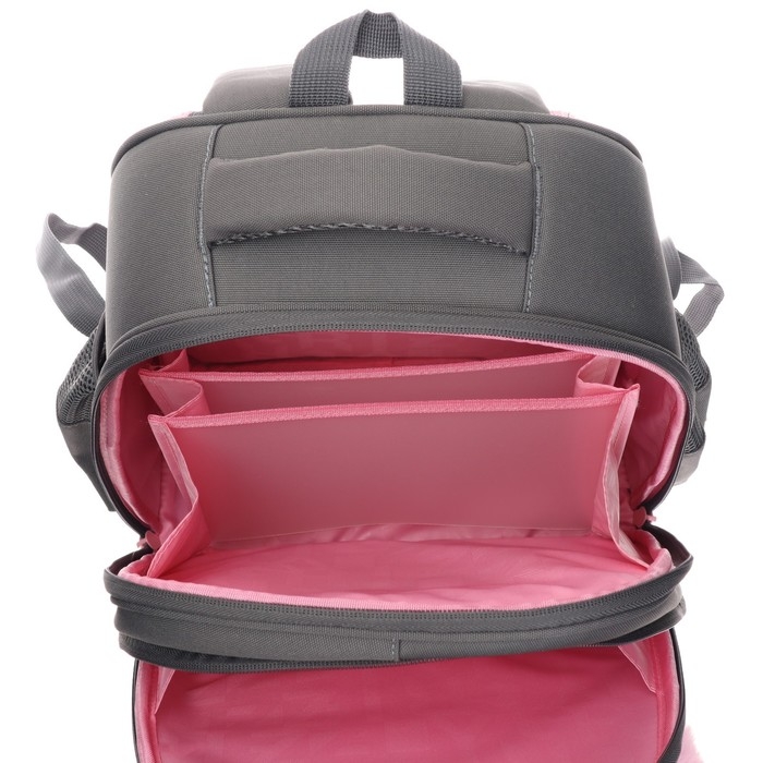 В него поместятся все школьные принадлежности. Основное отделение разбито на три отсека: для книг, тетрадей и папок А4. В дополнительное помещается сменка (есть три кармашка для мелочей). В боковых можно носить воду или перекус. Каждый предмет на своем месте. Ранец отлично подойдёт для первоклассника.