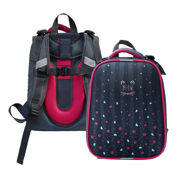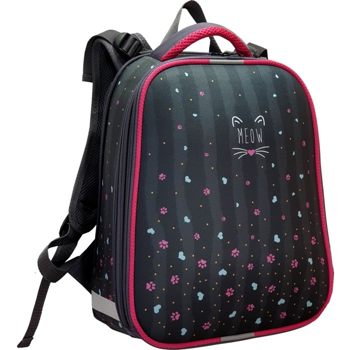 Рюкзак каркасный школьный 38 х 30 х 16 см, эргономичная спинка, Stavia "Принт лапки", мультиколор