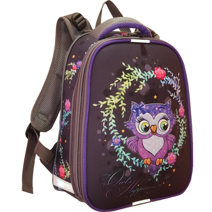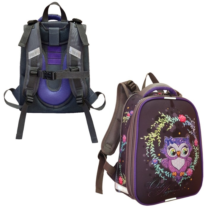 Рюкзак каркасный школьный 38 х 30 х 16 см, эргономичная спинка, Stavia "Совушка", серый