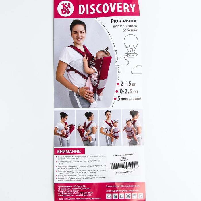 Рюкзак-кенгуру для малыша «Дискавери», от 2 до 15 кг., цвет темно-синий