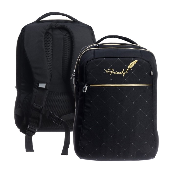 Рюкзак молодёжный 40 х 28 х 16 см, Grizzly, эргономичная спинка, отделение для ноутбука, чёрный