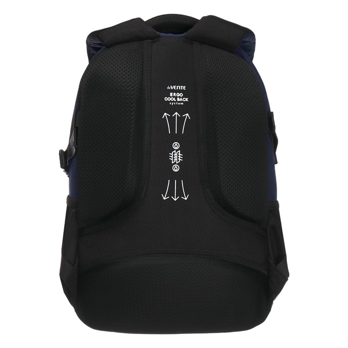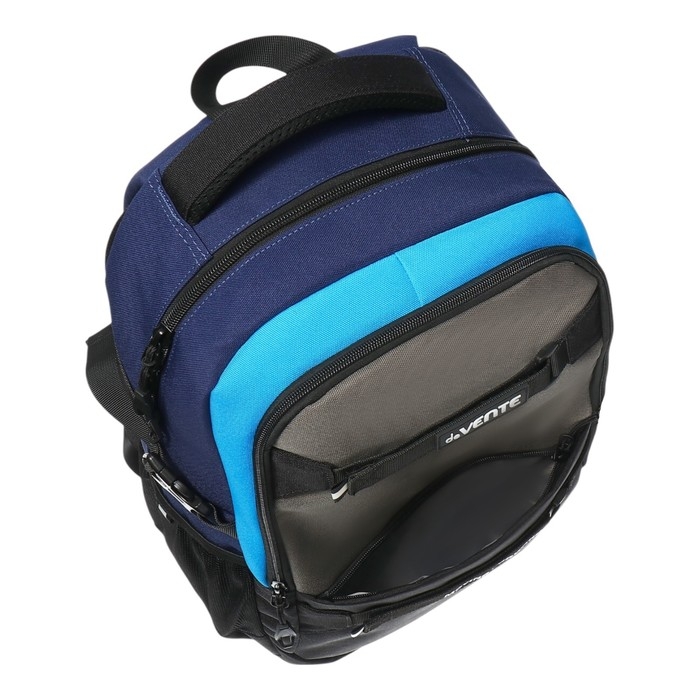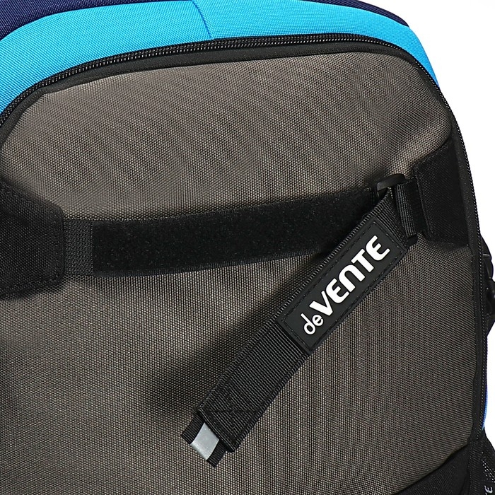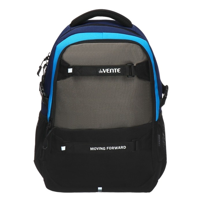 Рюкзак "deVENTE. Moving Forward. Dark" подростковый 44x30x20 см (19 л) 700 г, текстильный, 2 отделения на молнии, одно с уплотненным отделением для ноутбука до 15 дюймов и книг и карманом для учебников, второе с органайзером и карабином для ключей, боковая утяжка, передний карман на молнии, 2 крепления на липучке для скейтборда, 2 боковых кармана сеточкой, вентилируемая спинка с потайным карманом, уплотненные лямки с нагрудными креплениями, светоотражающие элементы.