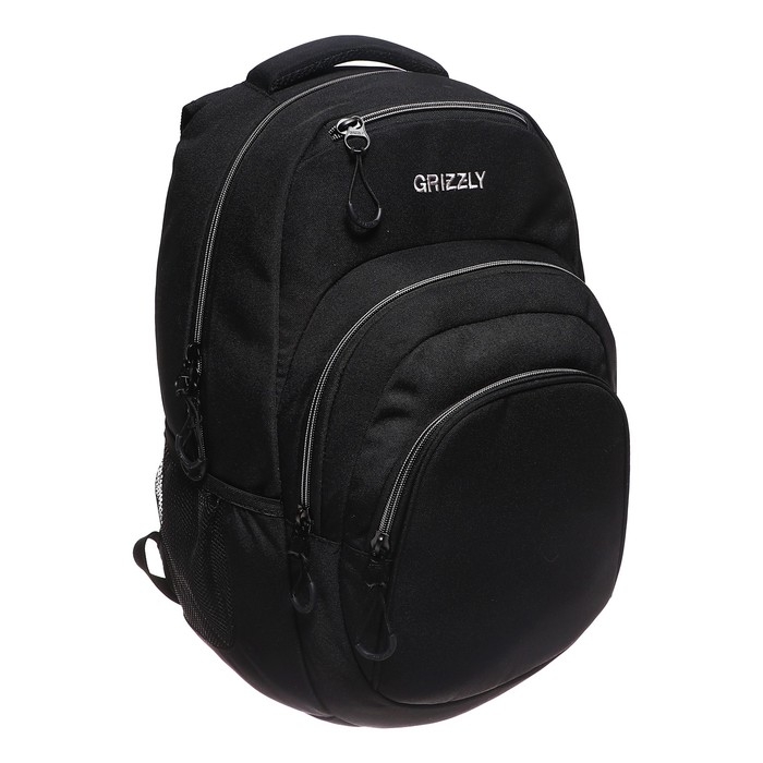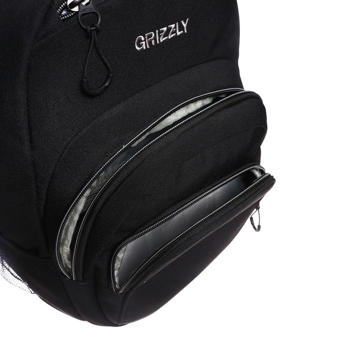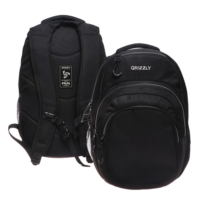 Рюкзак молодёжный 48 х 33 х 21 см, Grizzly, эргономичная спинка, отделение для ноутбука, чёрный/серый