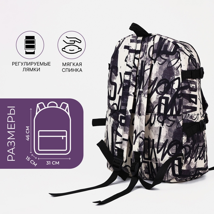 Рюкзак молодёжный из текстиля на молнии, 3 кармана, цвет серо-бежевый