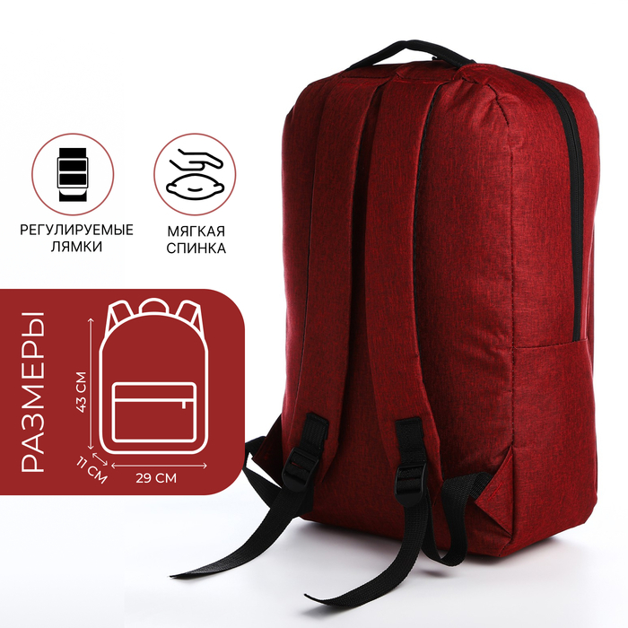 Рюкзак молодёжный из текстиля, наружный карман, цвет красный