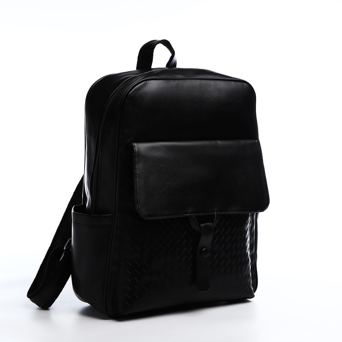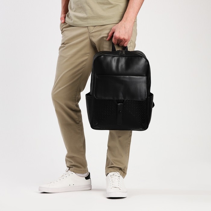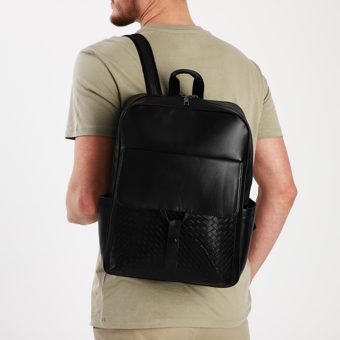 Рюкзак мужской на молнии, 3 наружных кармана, цвет чёрный