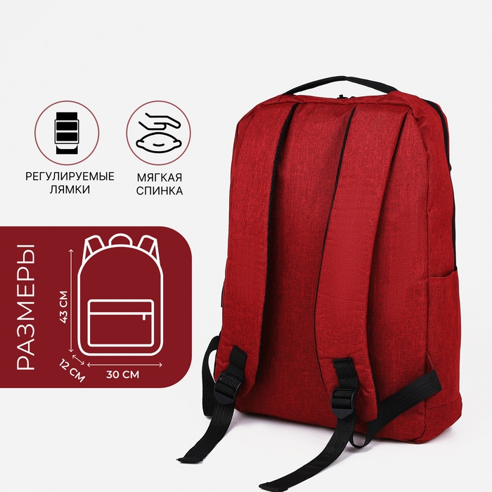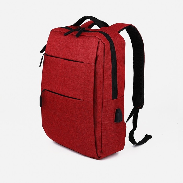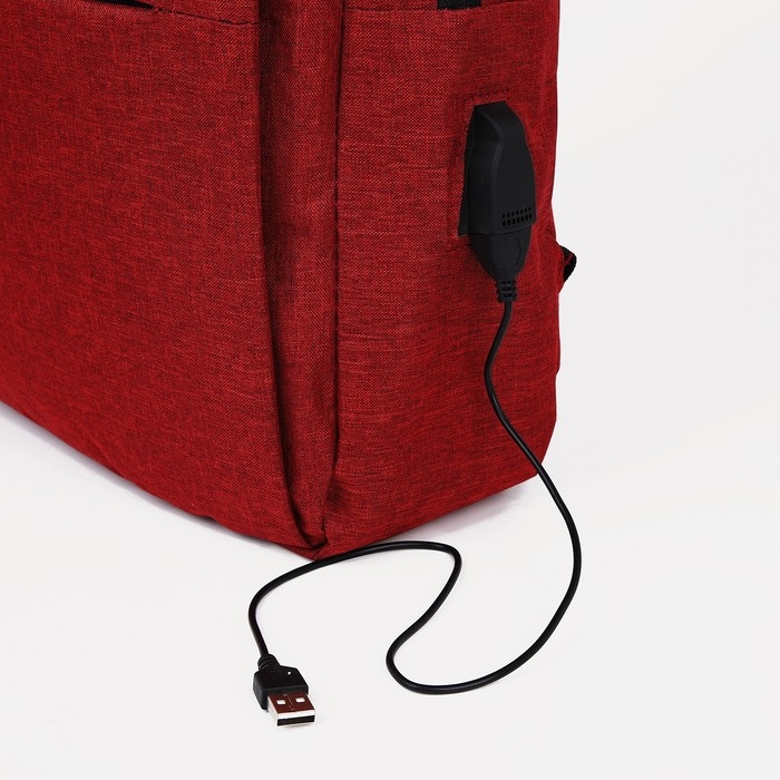 Рюкзак мужской на молнии, 4 наружных кармана, с USB, цвет бордовый