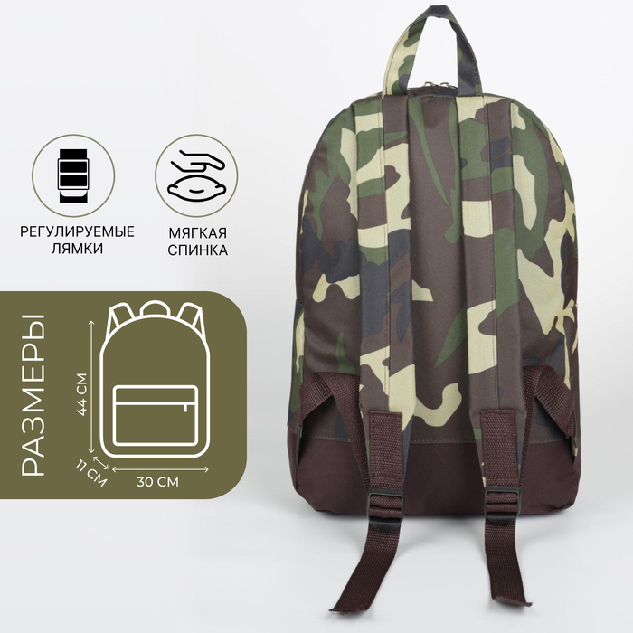 Рюкзак мужской на молнии, наружный карман, «ЗФТС», цвет камуфляж/хаки