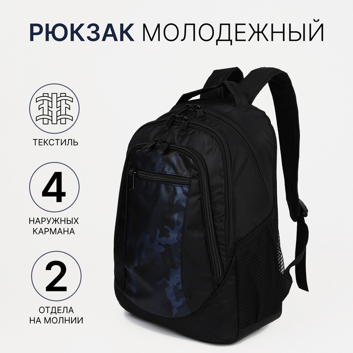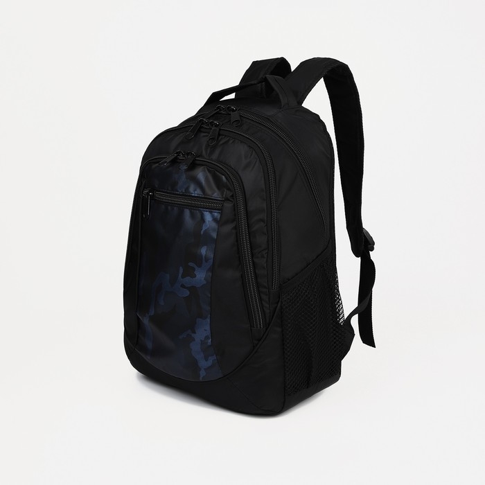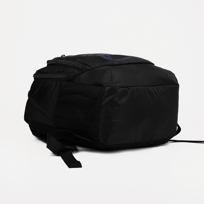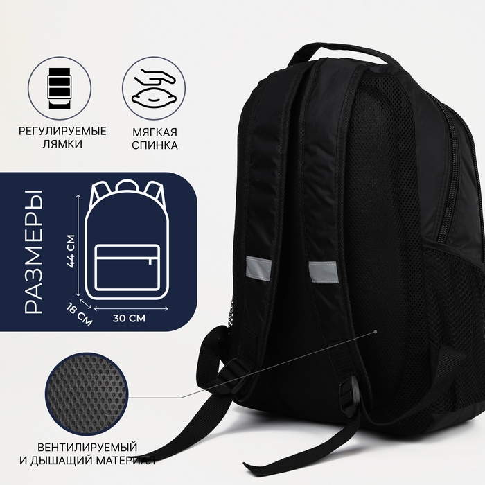 Рюкзак мужской со светоотражающими элементами, «Сакси», 2 отдела на молниях, 4 наружных кармана, цвет чёрный/синий