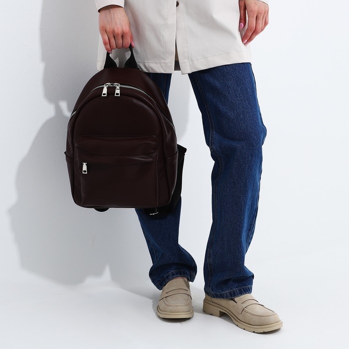 Рюкзак на молнии, «Медведково», наружный карман, цвет коричневый