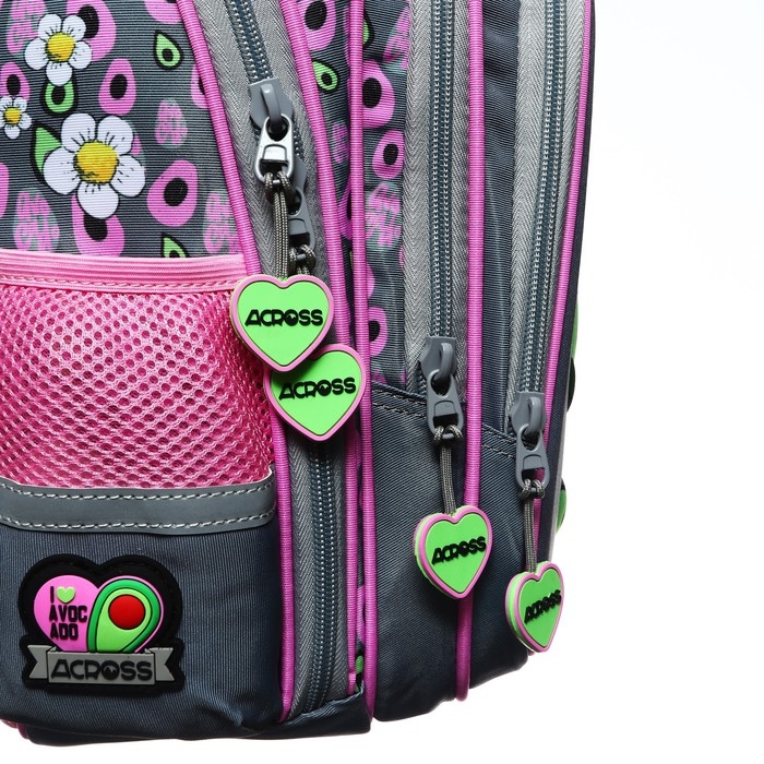 Рюкзак школьный 40 х 33 х 15 см, эргономичная спинка, Across 410, серый/розовый ACR23-410-1