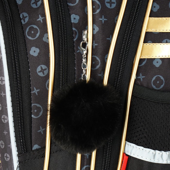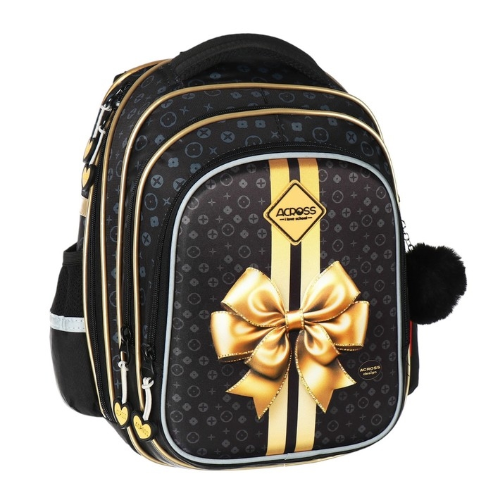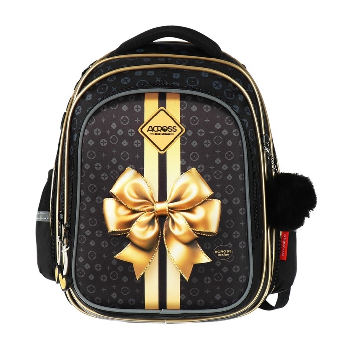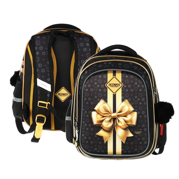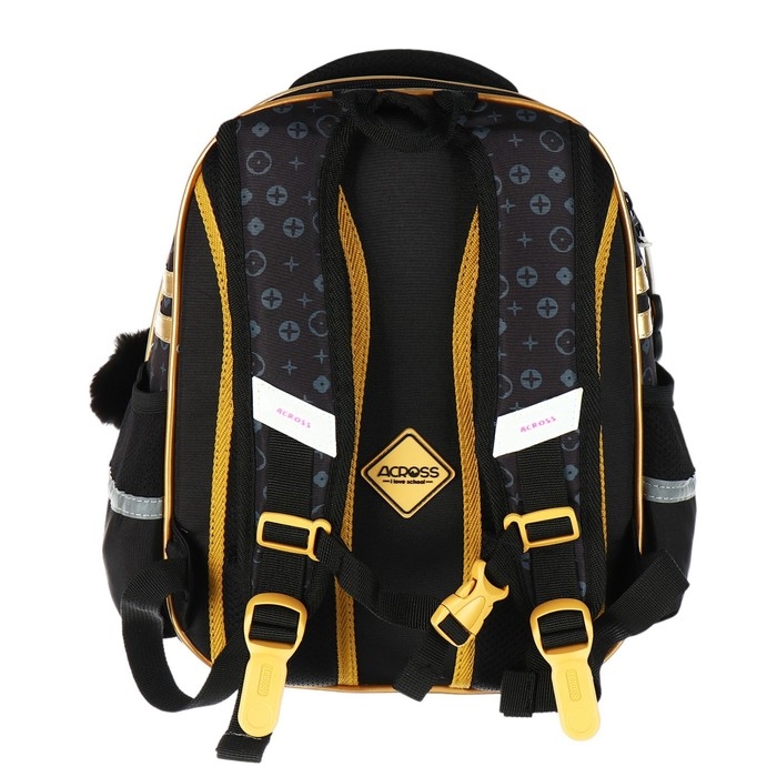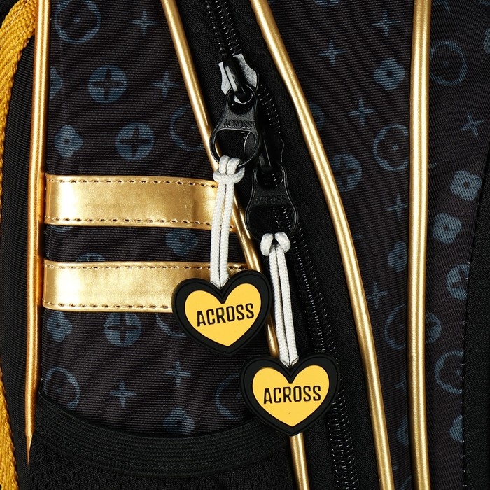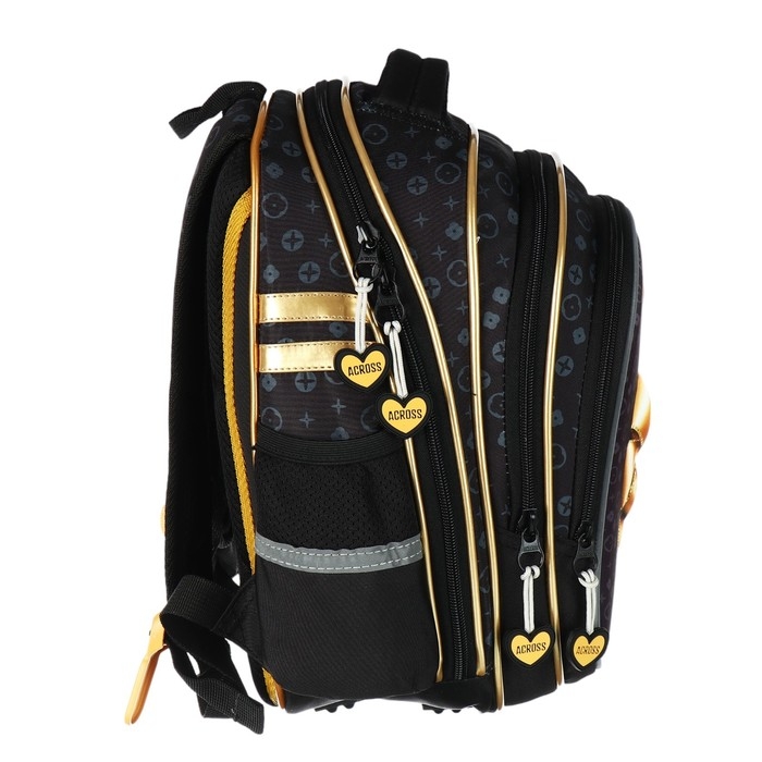 Рюкзак школьный 40х33х15см, эргономичная спинка, Across 410, черный/золотой