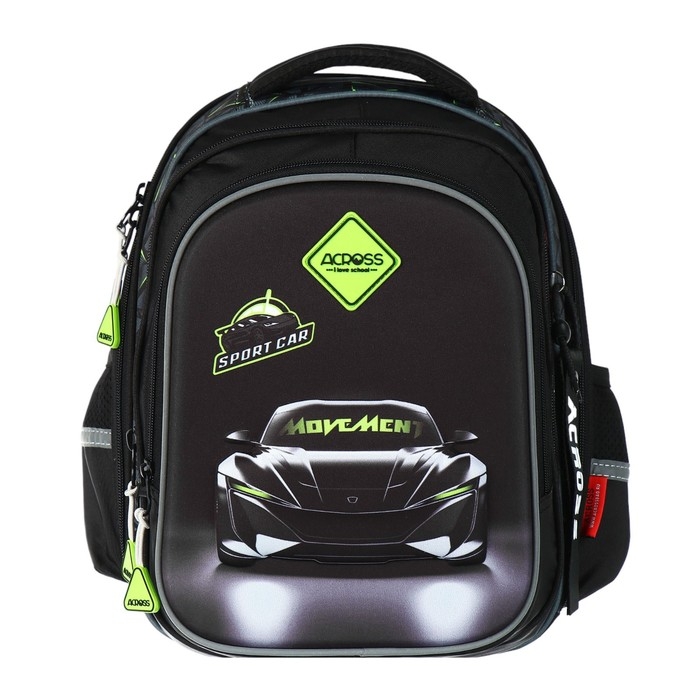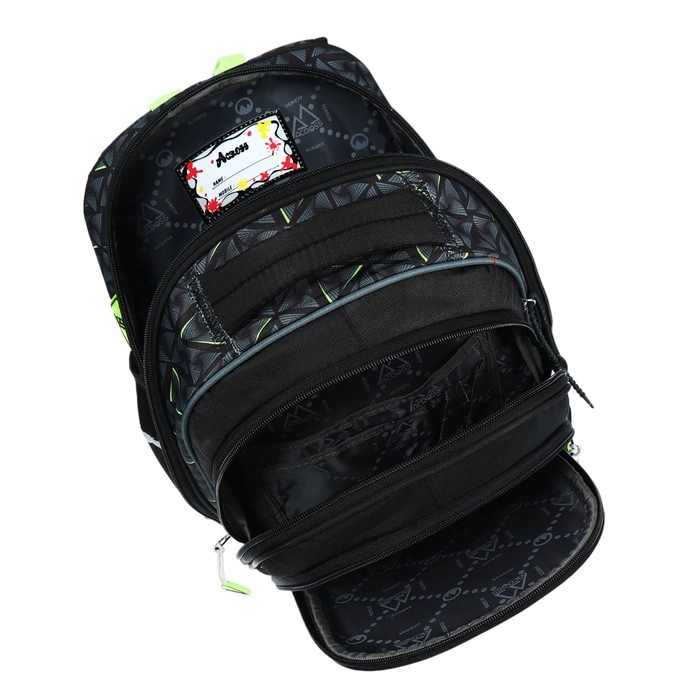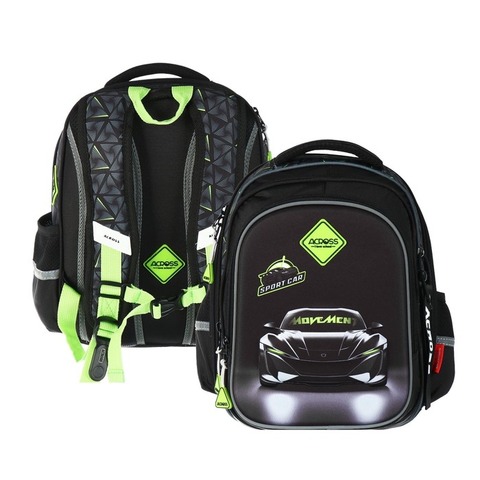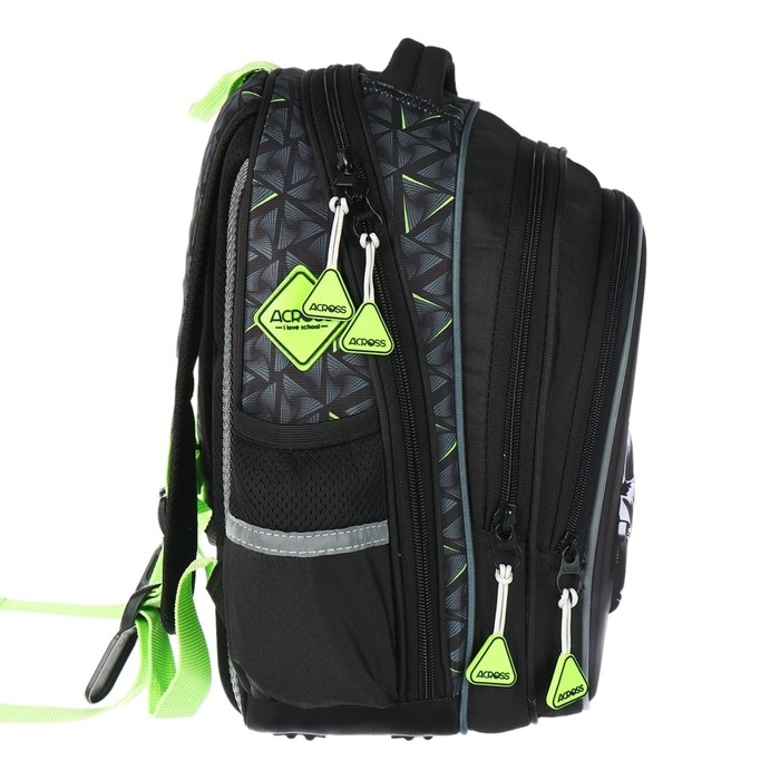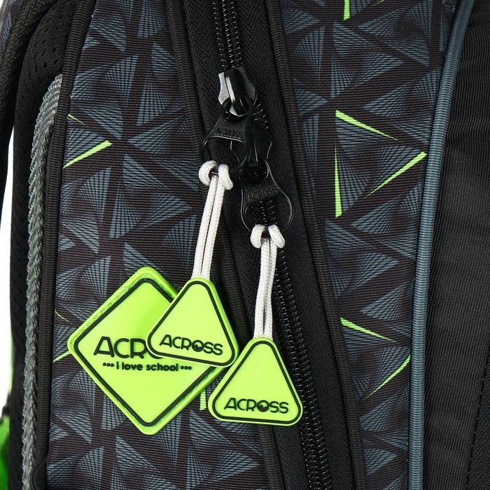Рюкзак школьный 40х33х15см, эргономичная спинка, Across 410, серый/зеленый