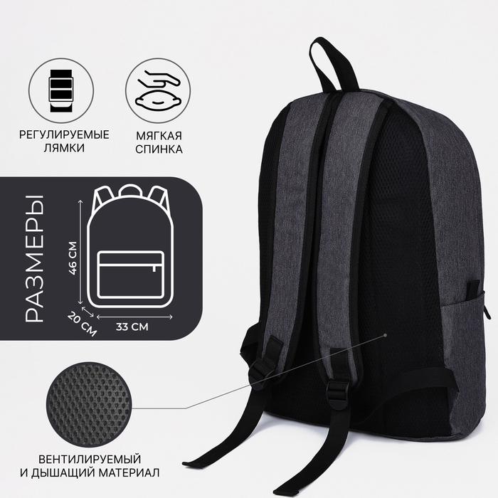 Рюкзак школьный из текстиля на молнии, FULLDORN, 3 кармана, цвет серый