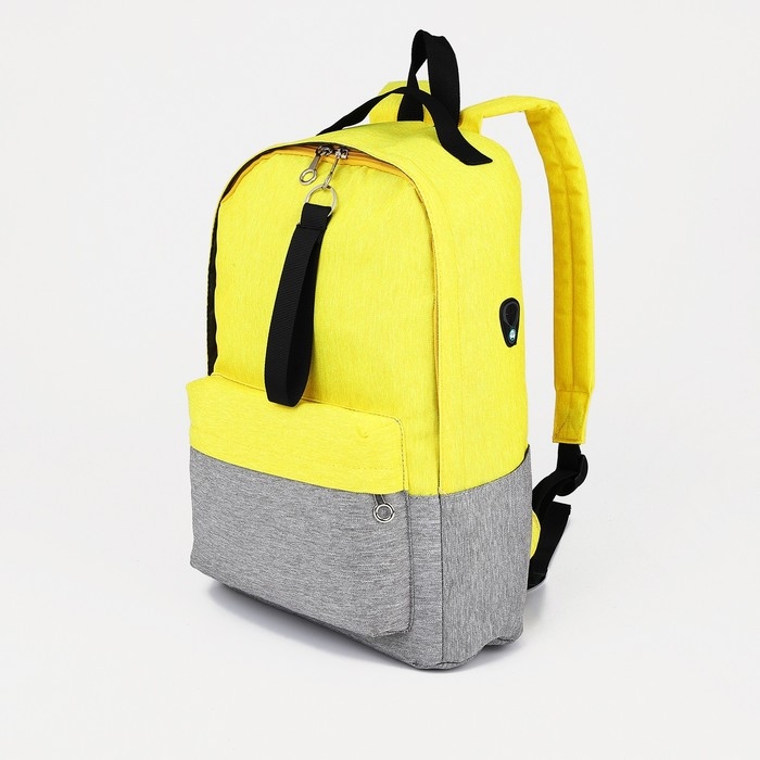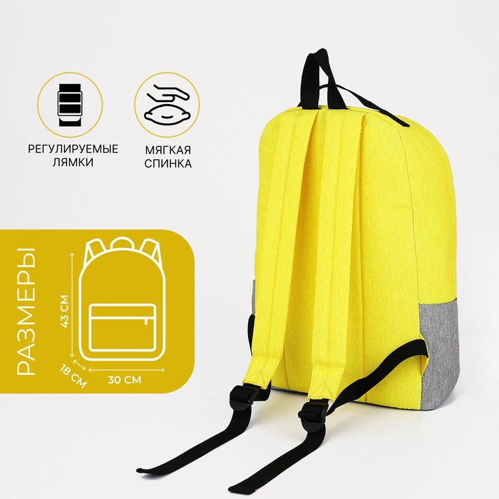 Рюкзак школьный из текстиля на молнии, FULLDORN, 3 кармана, цвет жёлто-серый