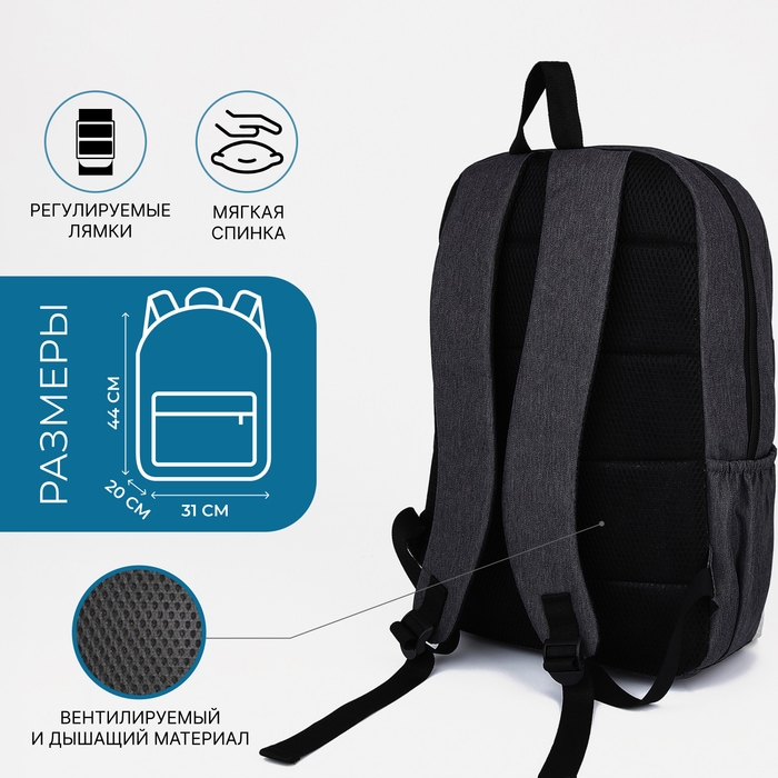 Рюкзак школьный из текстиля на молнии, FULLDORN, 5 карманов, цвет серый