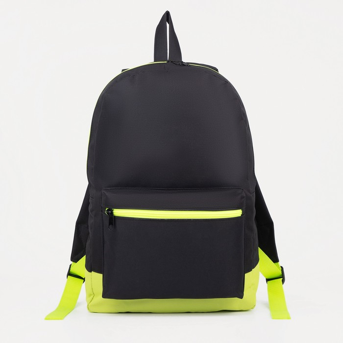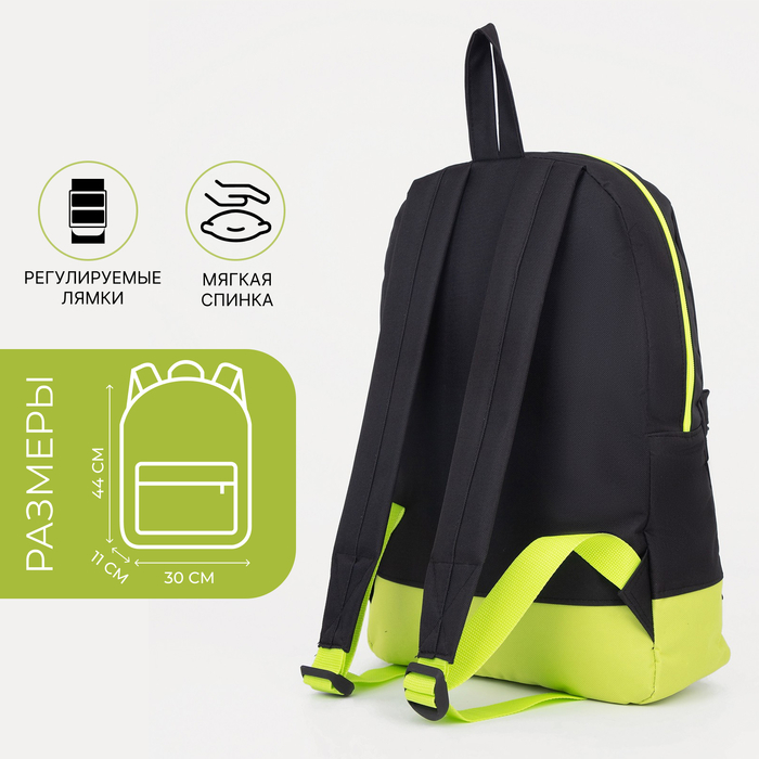 Рюкзак школьный из текстиля на молнии, наружный карман, «ЗФТС», цвет чёрный/зелёный