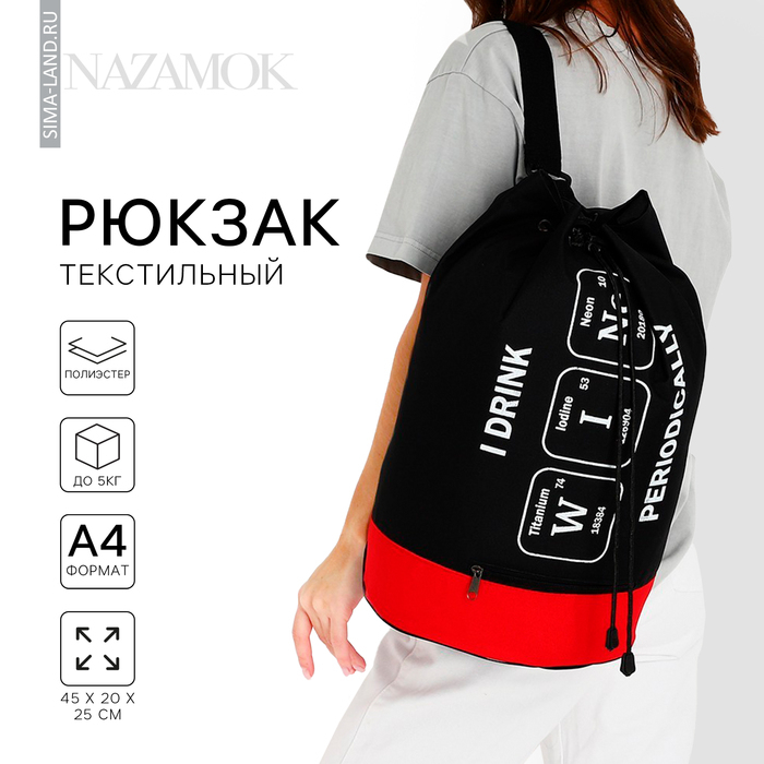 Рюкзак школьный молодёжный торба, отдел на стяжке шнурком, цвет чёрный/красный