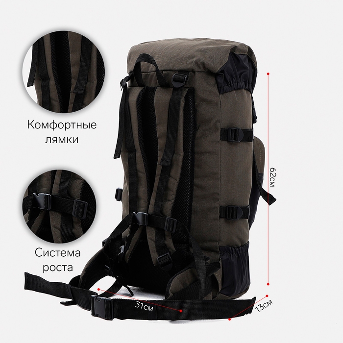 Рюкзак туристический, 40 л, отдел на стяжке, 3 наружных кармана, Huntsman, цвет хаки
