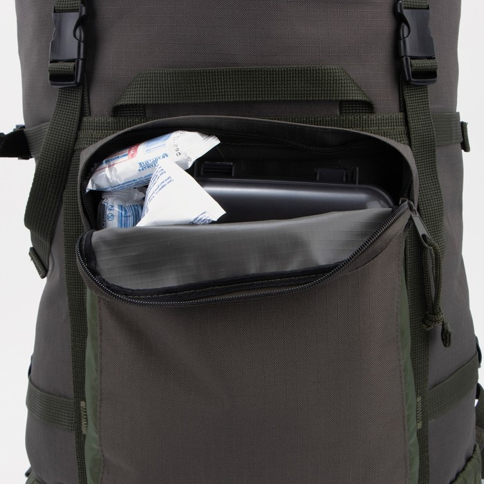 Рюкзак туристический, 70 л, отдел на молнии, 3 наружных кармана, Huntsman, цвет хаки