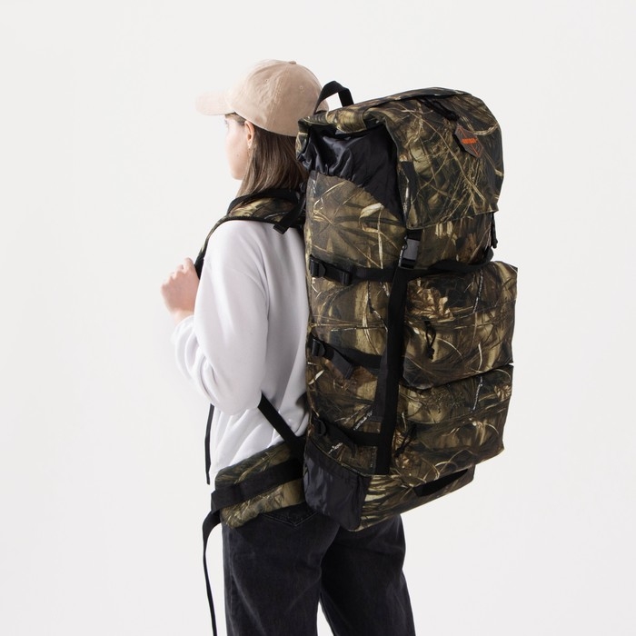 Рюкзак туристический, 80 л, отдел на молнии, 3 наружных кармана, Huntsman, цвет хаки