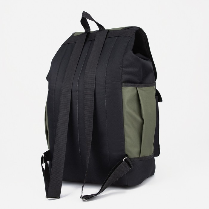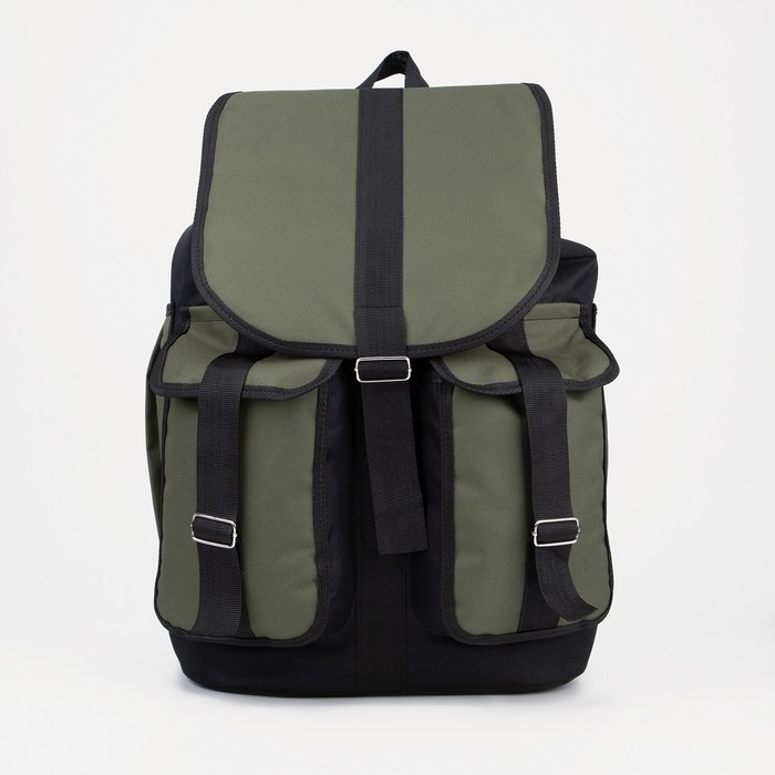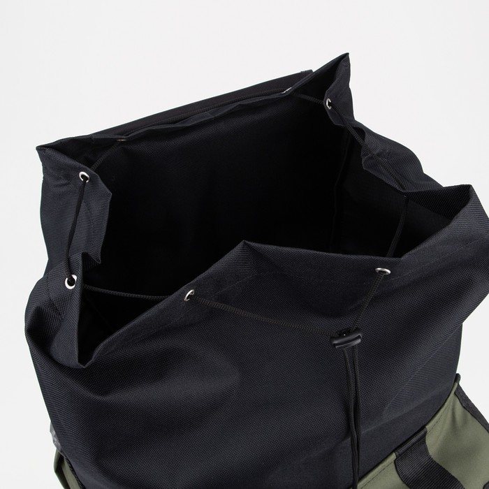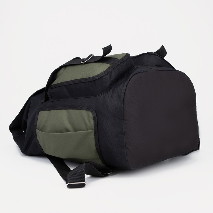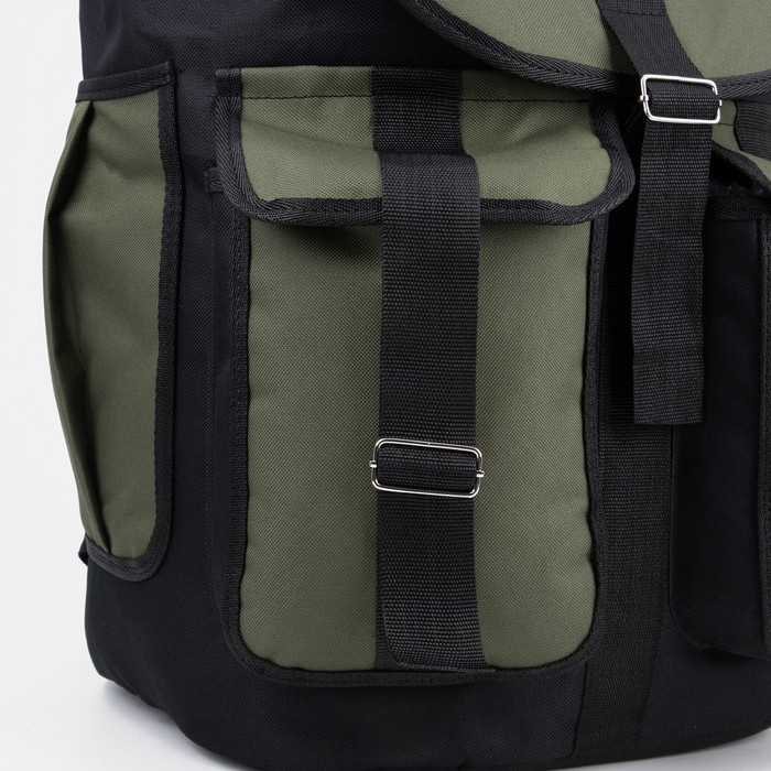 Рюкзак туристический на шнурке, 55 л, 4 наружных кармана, «ЗФТС», цвет чёрный/хаки