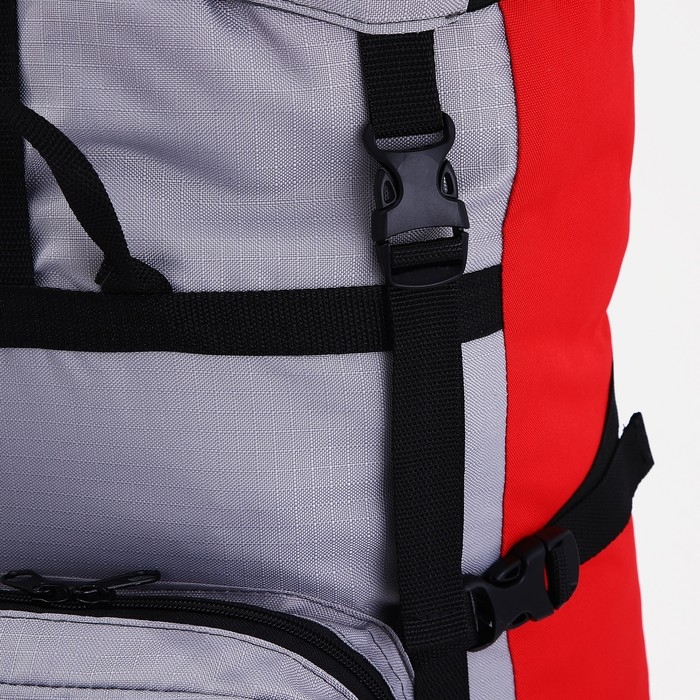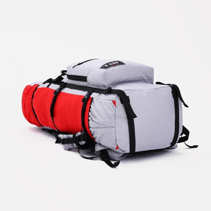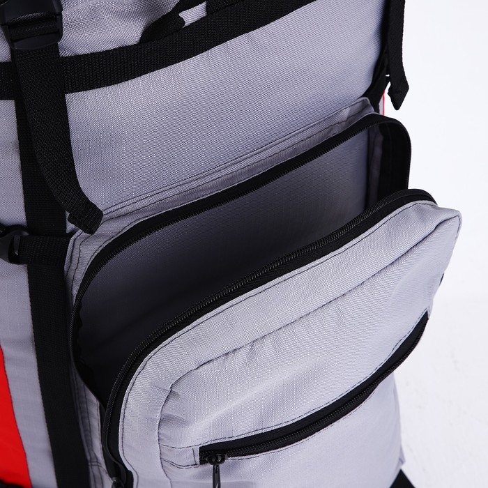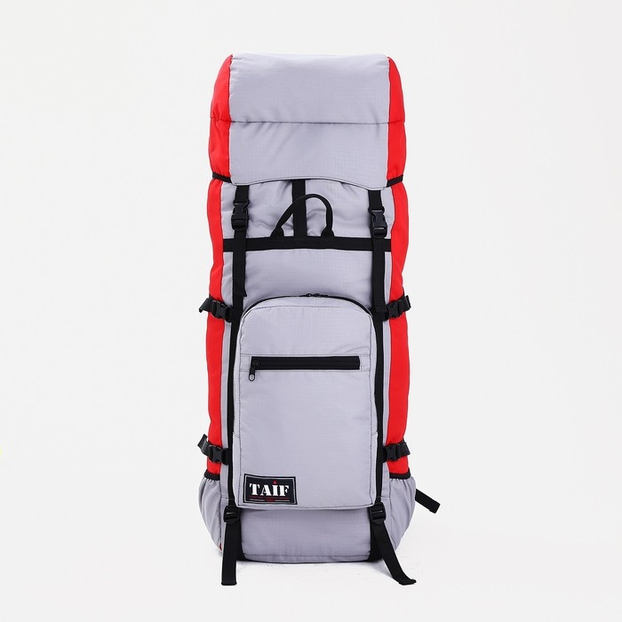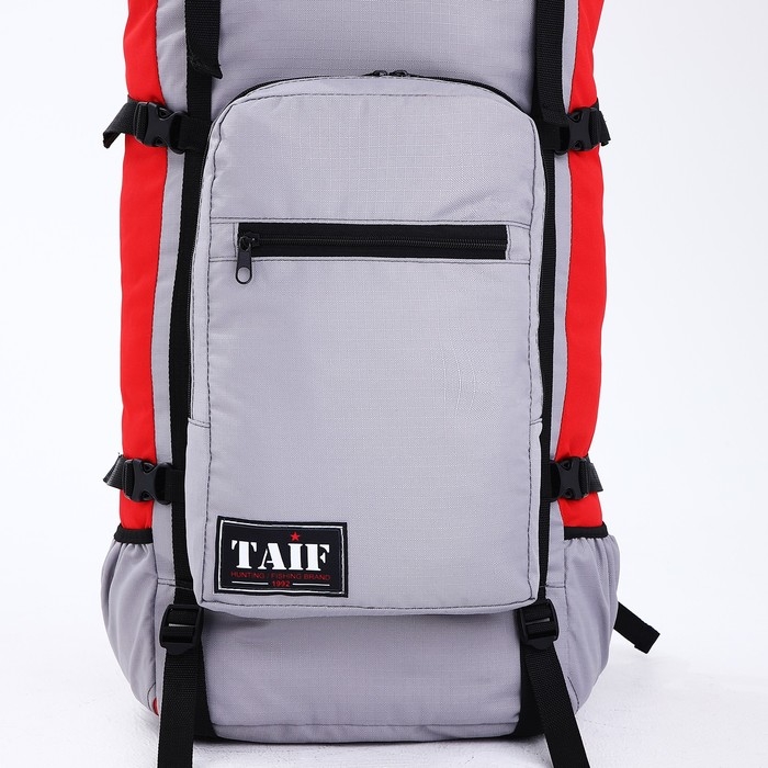 Рюкзак туристический, Taif, 90 л, отдел на шнурке, наружный карман, 2 боковые сетки, цвет серый/красный