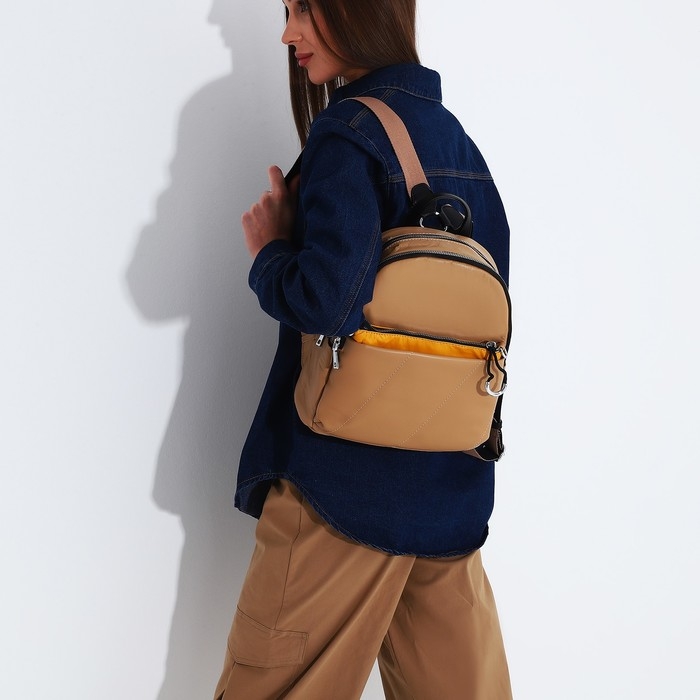 Рюкзак женский из искусственной кожи на молнии, 1 карман, цвет бежевый