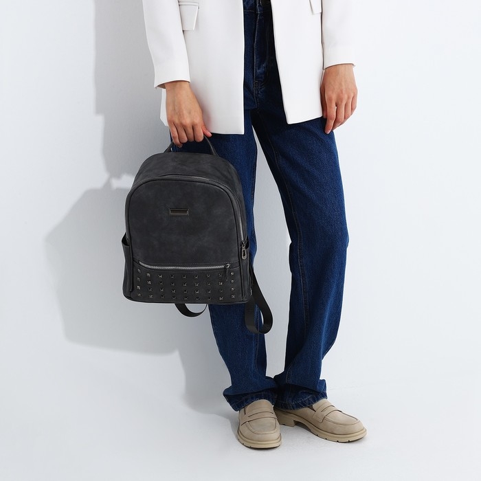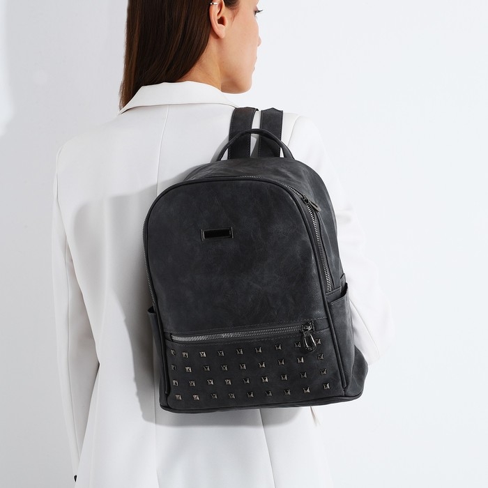 Рюкзак женский из искусственной кожи на молнии, 1 карман, цвет серый