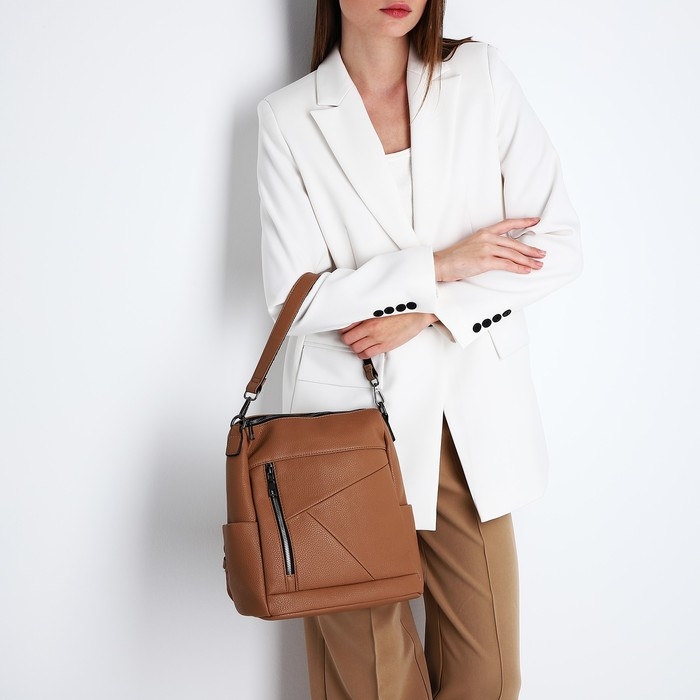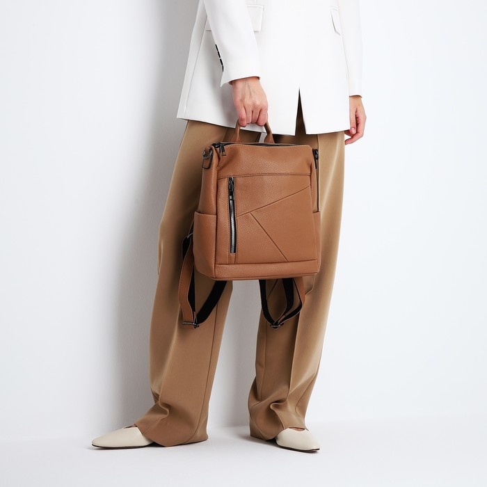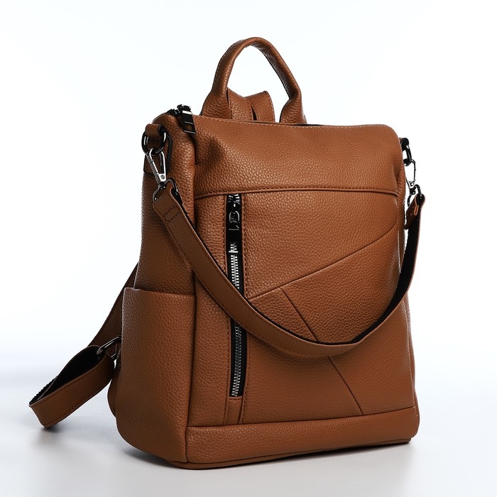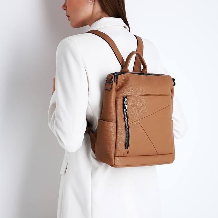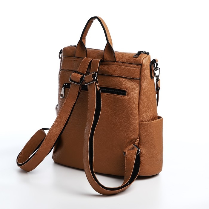 Рюкзак женский из искусственной кожи на молнии, 4 кармана, цвет коричневый