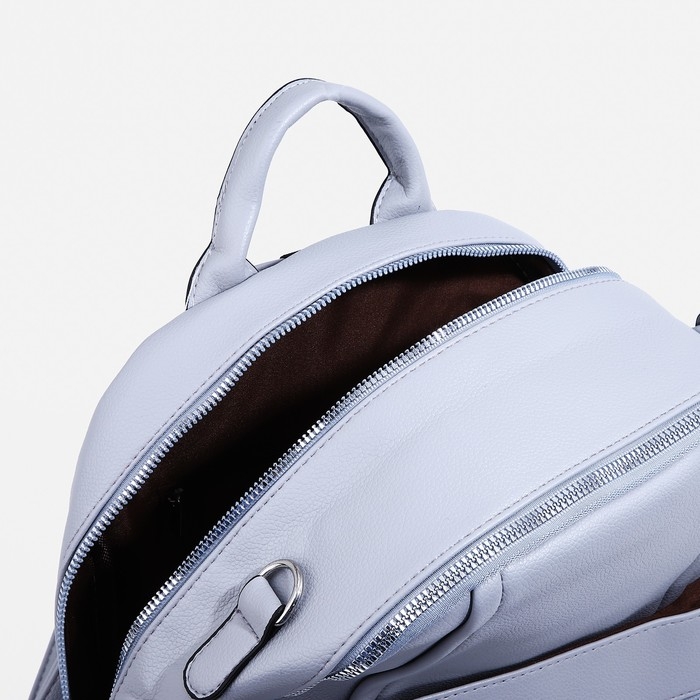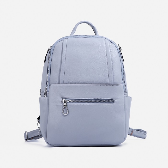 Рюкзак женский из искусственной кожи на молнии, 4 кармана, сумка, цвет серо-голубой