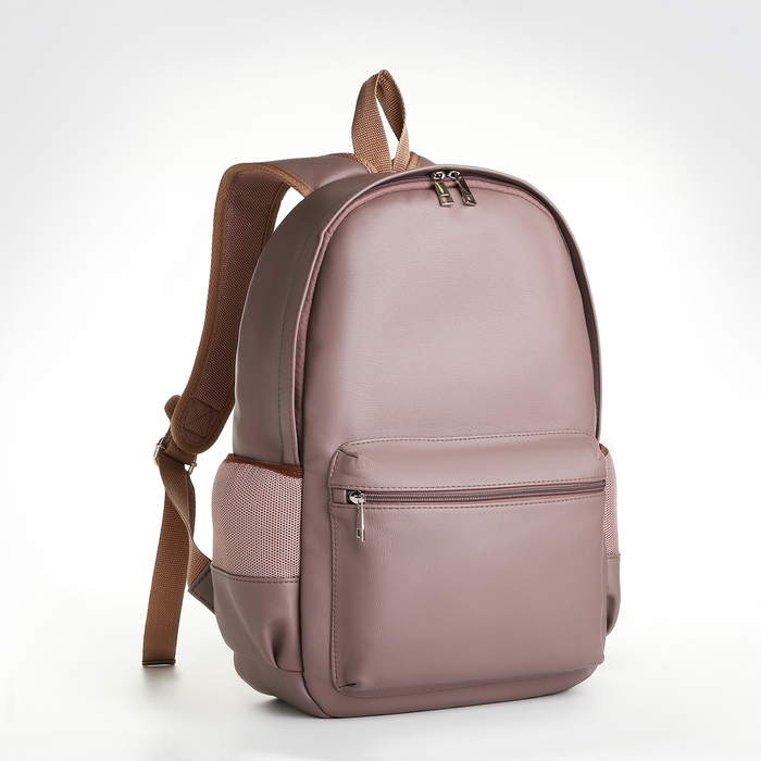 Рюкзак женский из искусственной кожи на молнии, 1 карман, цвет бежевый