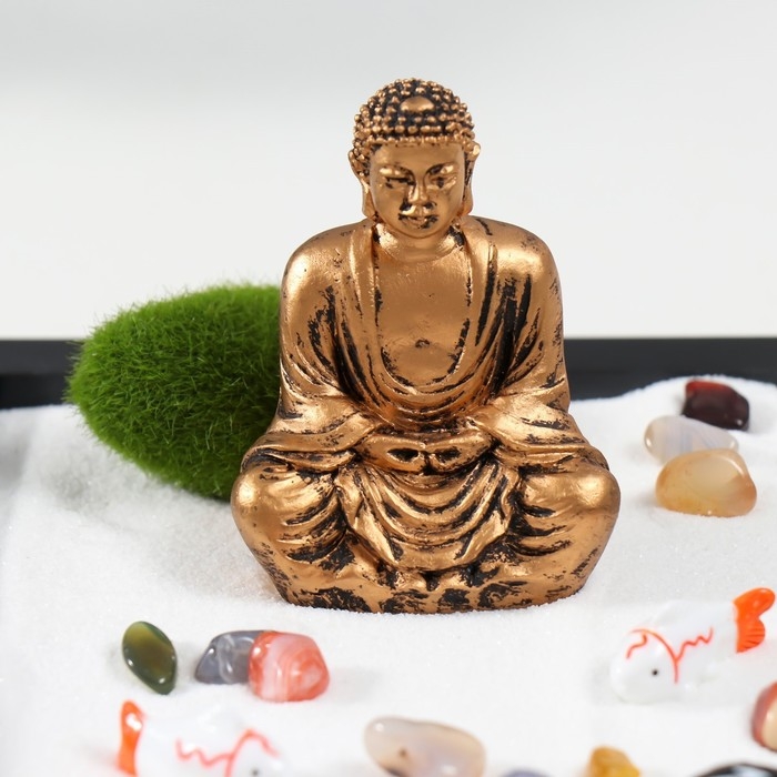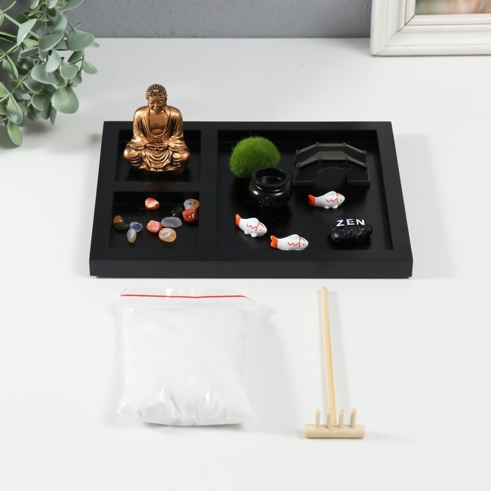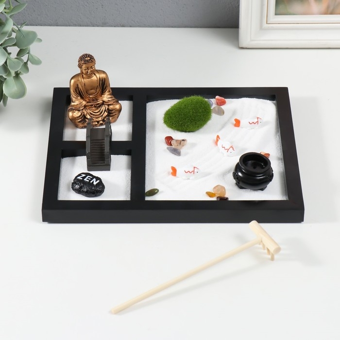 Сад камней Дзен "Будда и рыбки" белый песок 1,2х21,5х17,5 см