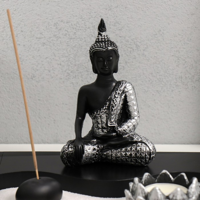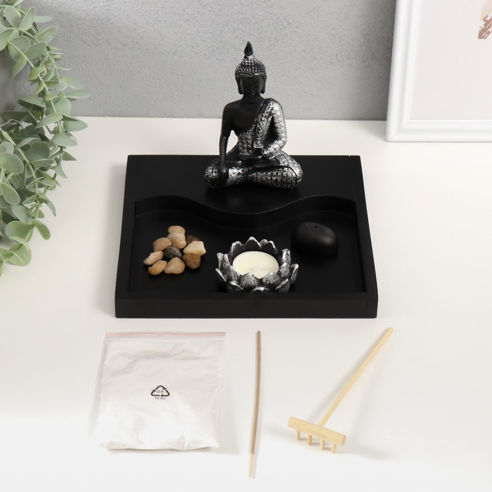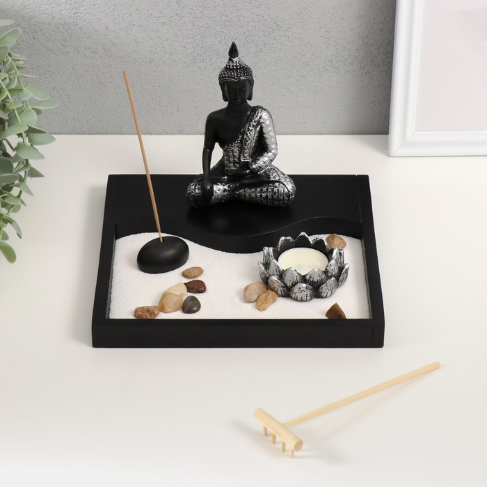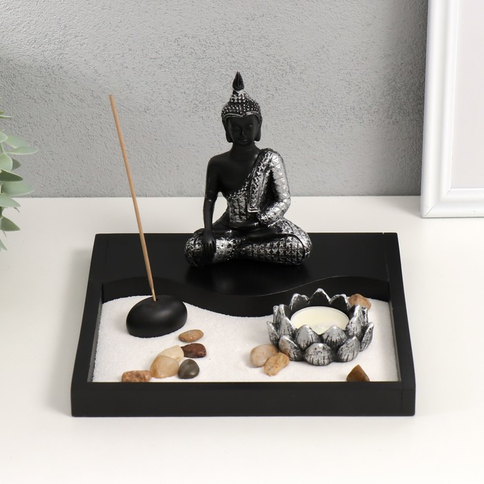 Сад камней Дзен "Будда просветление" песок белый + свеча 14х20х20 см