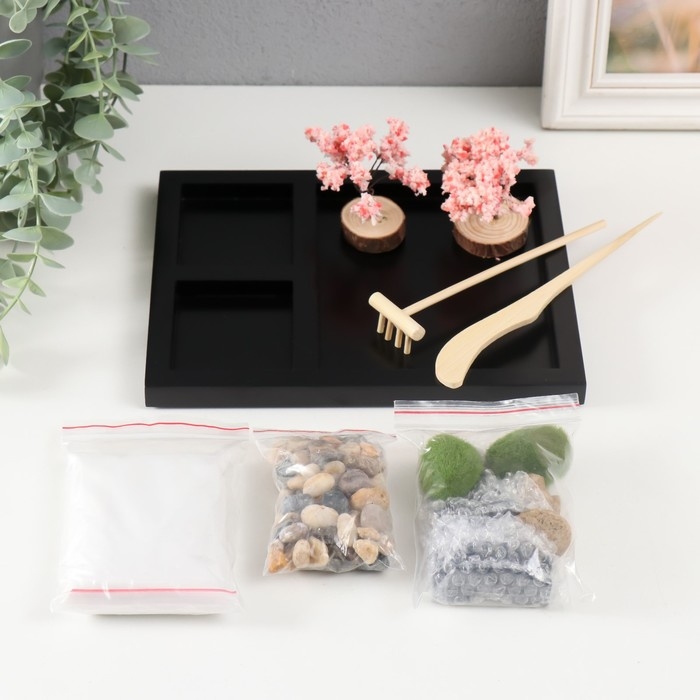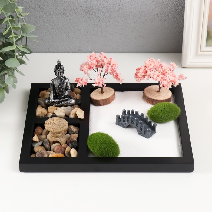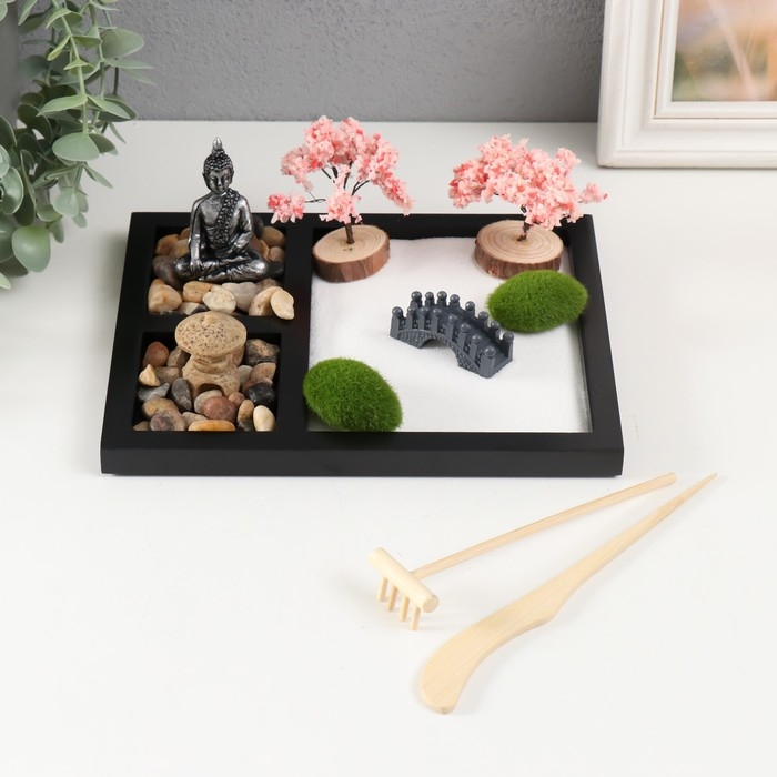 Сад камней Дзен "Будда в камнях и мостик" белый песок 1,5х21,5х17,5 см
