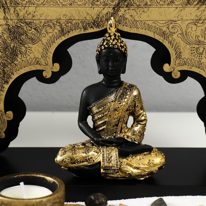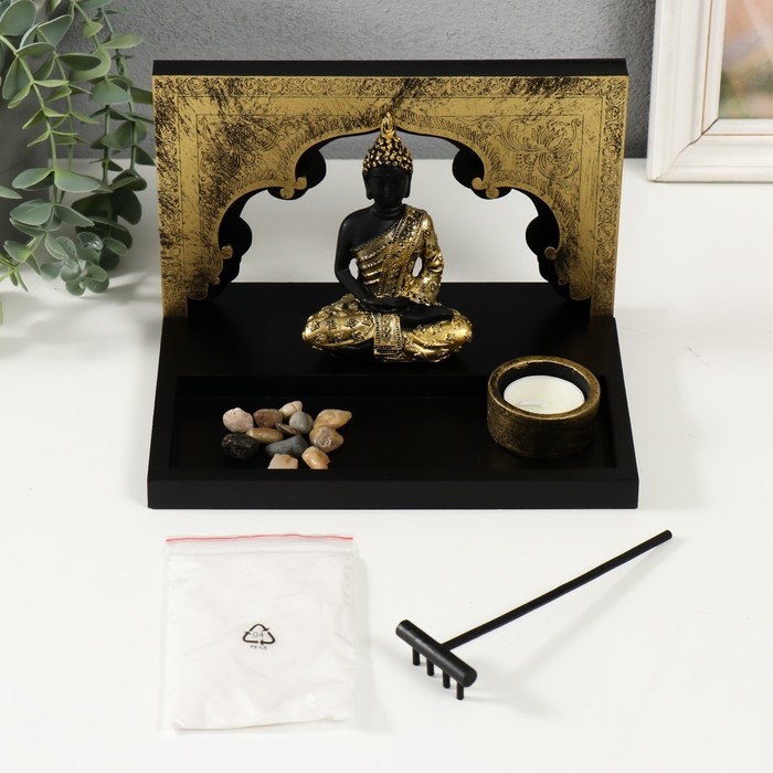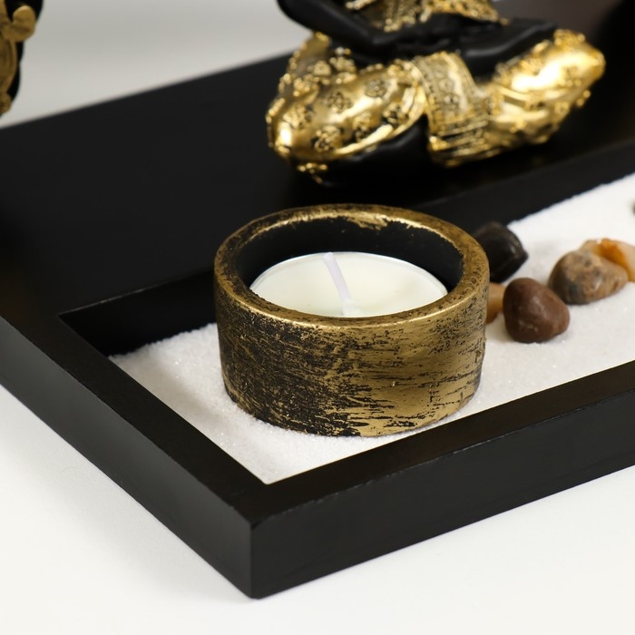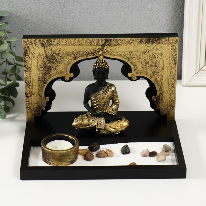 Сад камней Дзен "Будда во дворце у золотой арки" песок+свеча 21х16х14 см