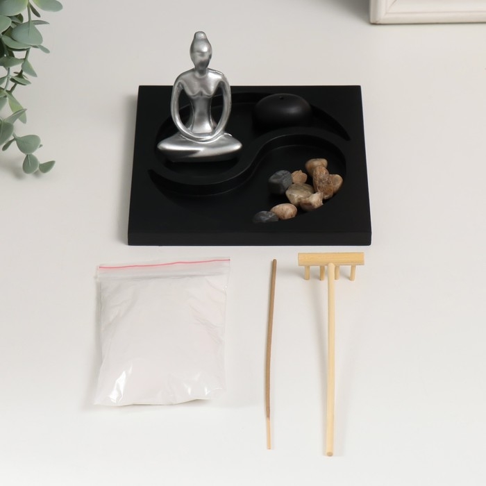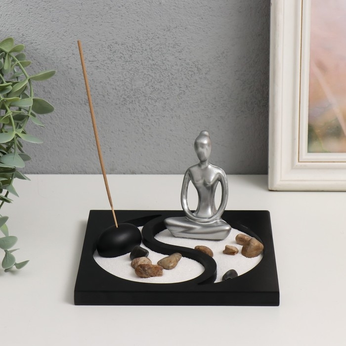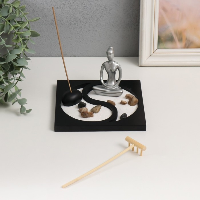 Сад камней Дзен "Медитация. Инь-ян" песок+аромапалочка 15х15х9,3 см