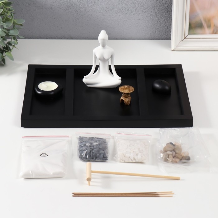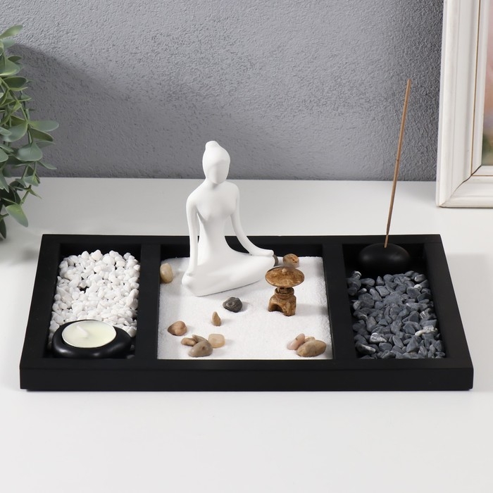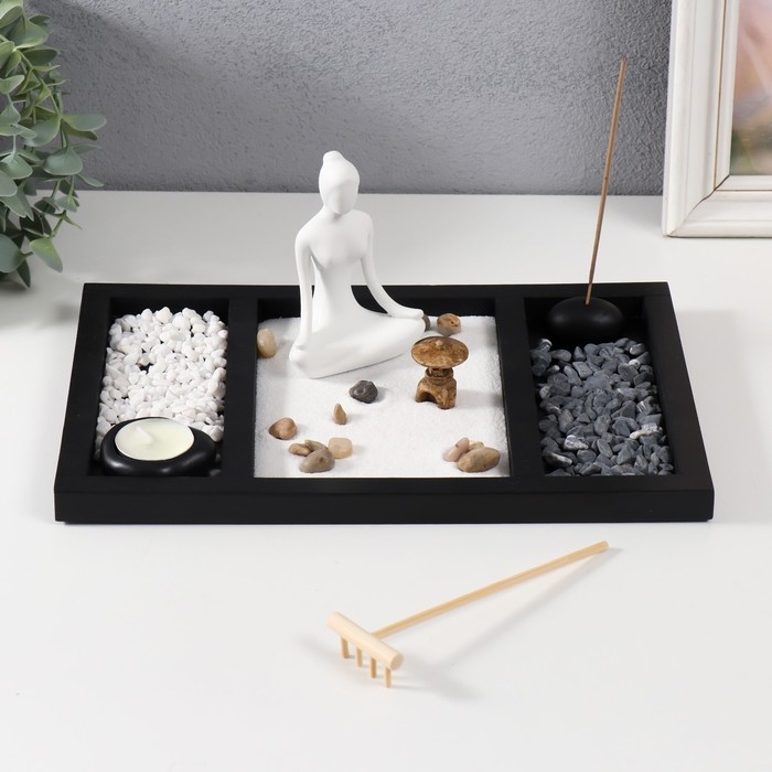 Сад камней Дзен "Медитация - инь-ян" песок+свеча+аромапалочка 29,5х19,8х12 см