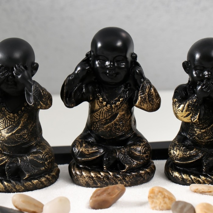 Сад камней Дзен "Ничего не вижу, не слышу, не скажу" с 2мя свечками и аромапалочкой 28х16,5