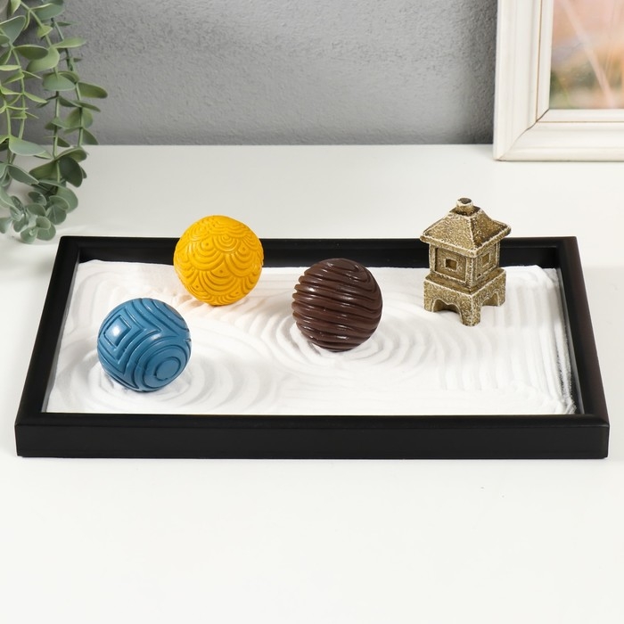 Сад камней Дзен "Три шара с рисунками" песок 29,5х20х5,5 см