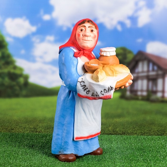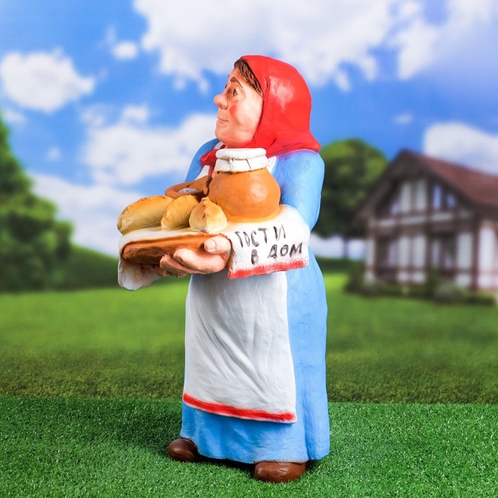 Садовая фигура "Бабка "Хлеб да соль!" 53х23х32см