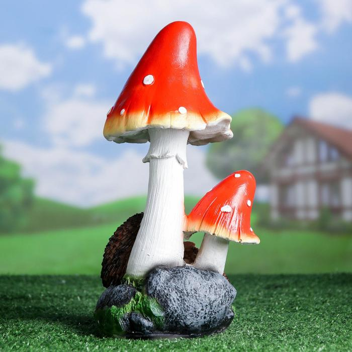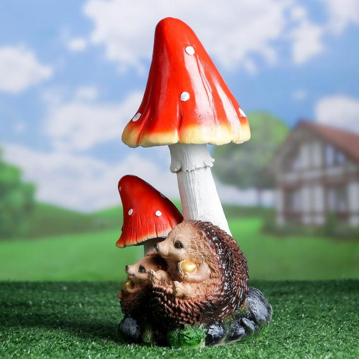 Садовая фигура "Ежи под грибами" 15х16х31см