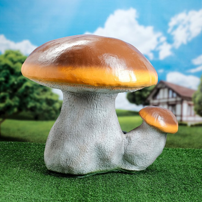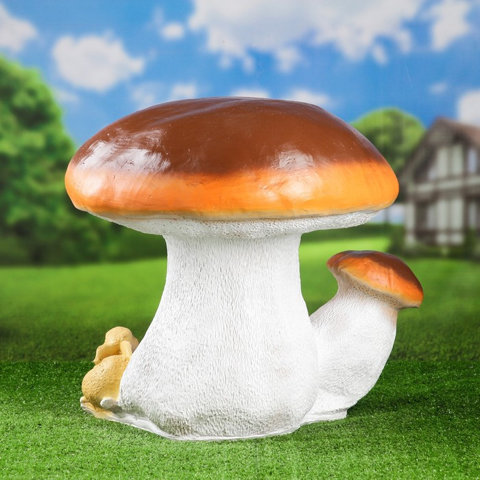 Садовая фигура "Гриб белый двойной с зайчатами" 58х52см