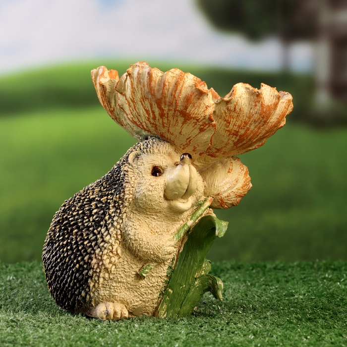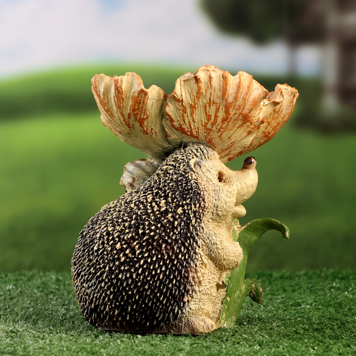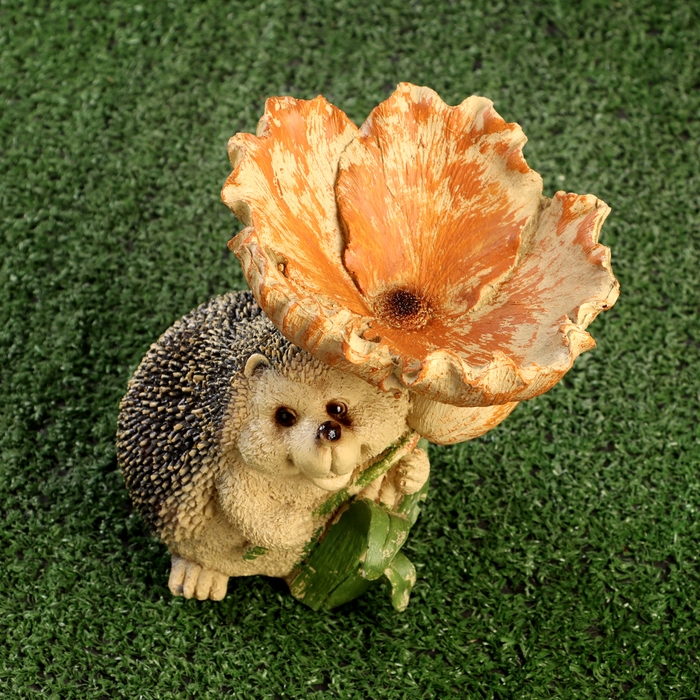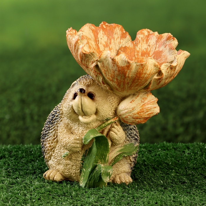 Садовая фигура - кормушка "Ёж с цветком" 16см